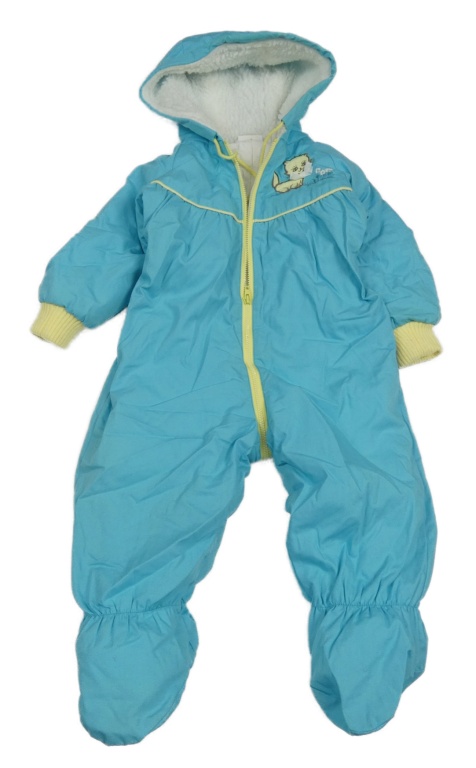 Azurová zimná kombinéza s mačkou a kapucňou