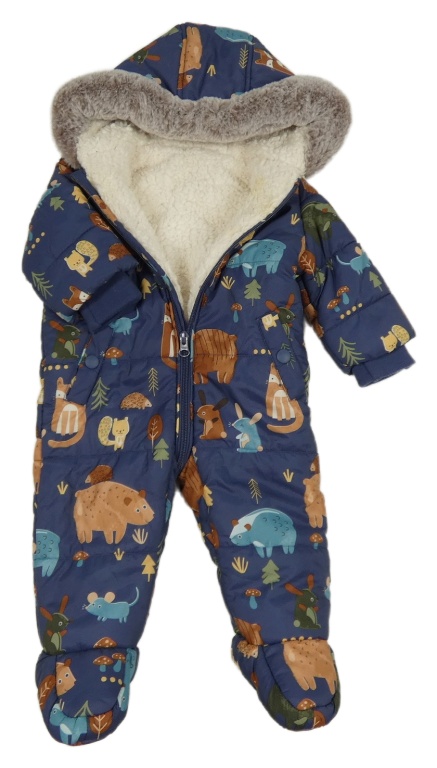 Tmavomodrá šušťáková zimná kombinéza so zvířaty a kapucňou George
