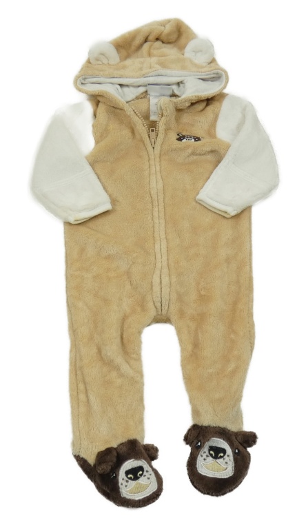 Béžovo-biela chlpatá kombinéza s medvěďom a kapucňou