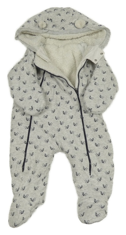 Sivá tepláková zateplená kombinéza s veverkami a kapucňou