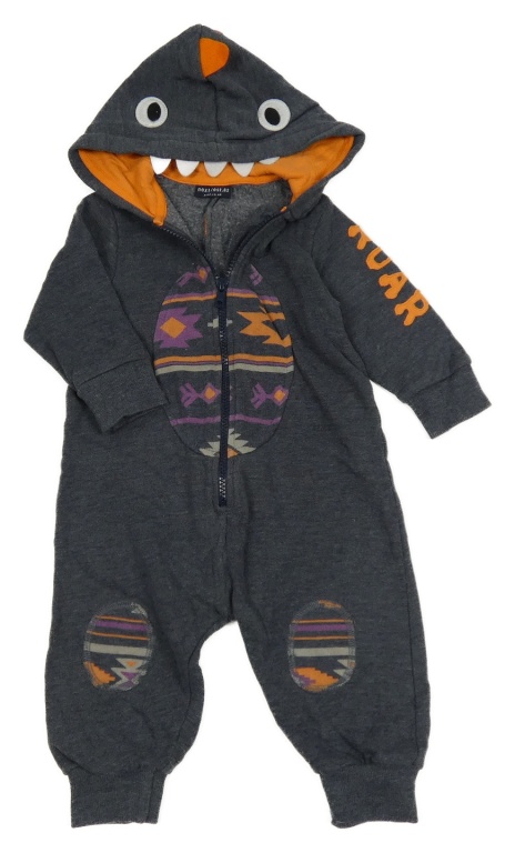 Sivo-oranžovo-farebná tepláková kombinéza s ostny a kapucí - dino Next