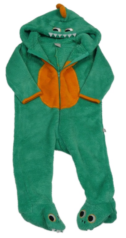 Zeleno-oranžová plyšová kombinéza s kapucí - príšerka Smile