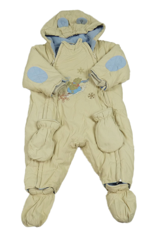 Béžová šušťáková zimná kombinéza s medvídkem Pú a kapucí+ rukavice+ topánky Disney