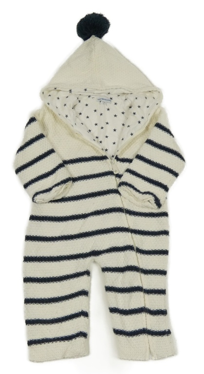 Bielo-tmavomodrá pruhovaná pletená podšitá kombinéza s kapucňou Vertbaudet