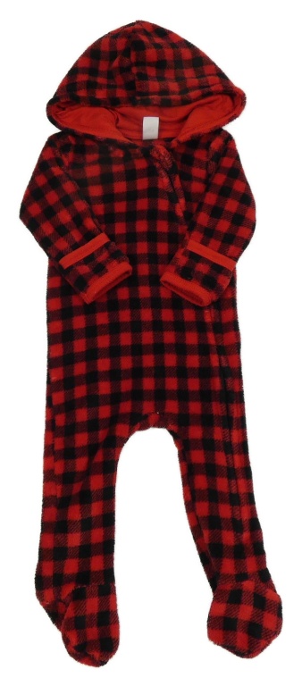 Červeno-čierna kockovaná chlpatá kombinéza s kapucňou