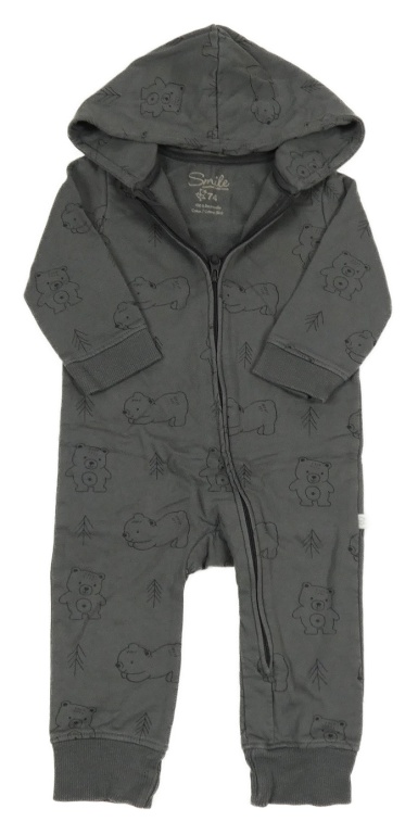 Antracitová tepláková kombinéza s medvedíkmi a kapucňou