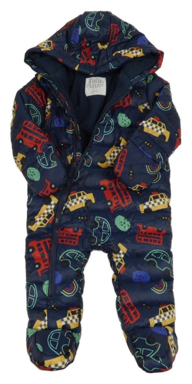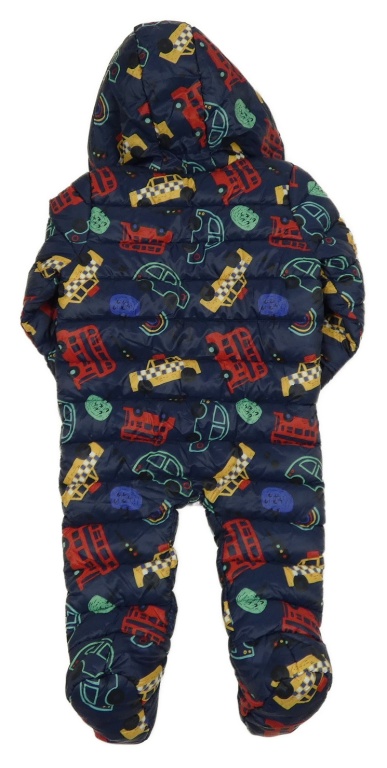 Tmavomodrá šušťáková zimná kombinéza s autami a kapucňou F&F