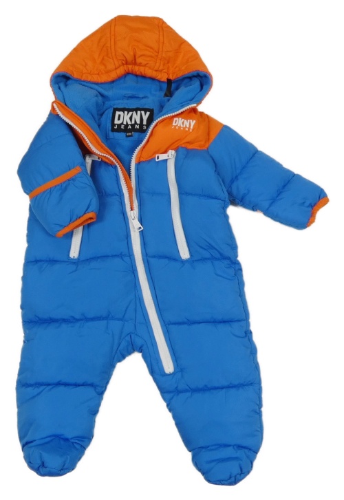 Modro-oranžová šušťáková zimná kombinéza s kapucňou DKNY