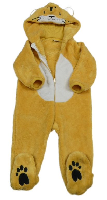 Žlto-biela chlpatá kombinéza s -kapucí tiger