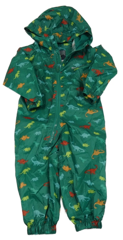 Zelená šušťáková funkčná jarná kombinéza s dinosaurami a kapucňou Regatta
