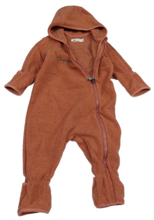 Skořicová melírovaná fleecová kombinéza s kapucňou
