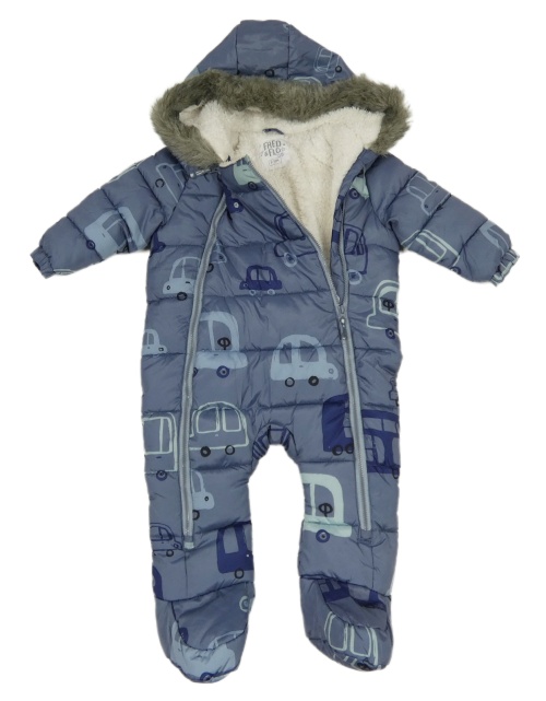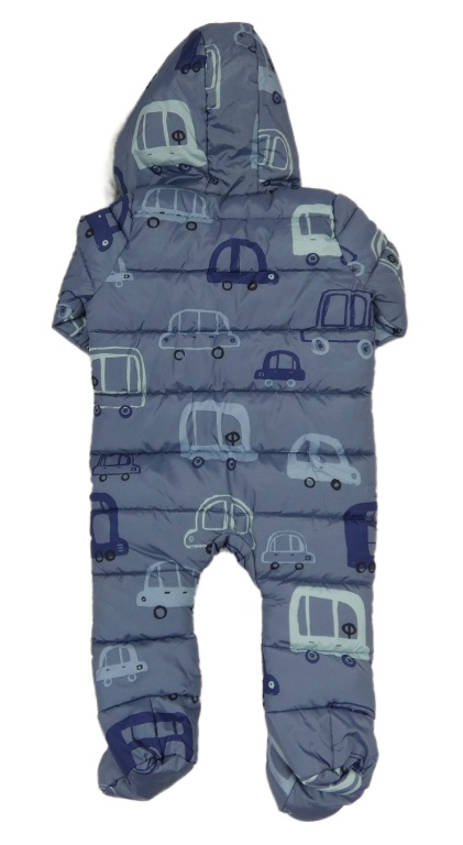 Tmavomodrošedá prešívaná šušťáková zimná kombinéza s autami a kapucňou F&F