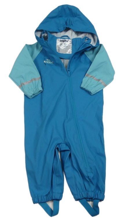 Modro-svetlomodrá nepromokavá kombinéza s reflexními pruhmi a kapucňou Lupilu