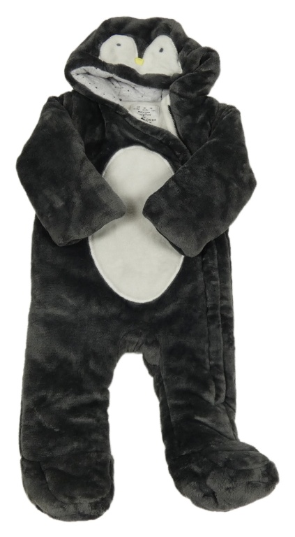 Tmavošedo-biela kožušinová zateplená kombinéza s kapucí - tučňák F&F