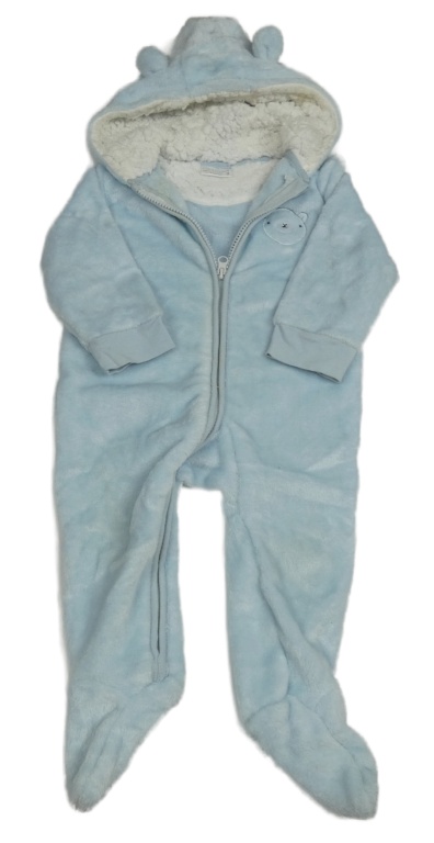Svetlomodrá plyšová kombinéza s medvěďom a kapucňou