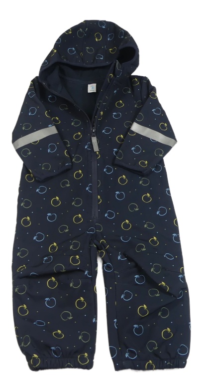 Tmavomodrá softshellová kombinéza s jablíčky a kapucňou Topomini