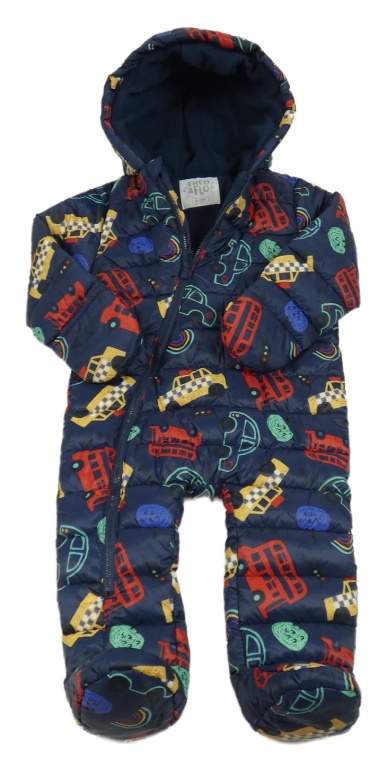 Tmavomodrá šušťáková zimná kombinéza s autami a kapucňou F&F