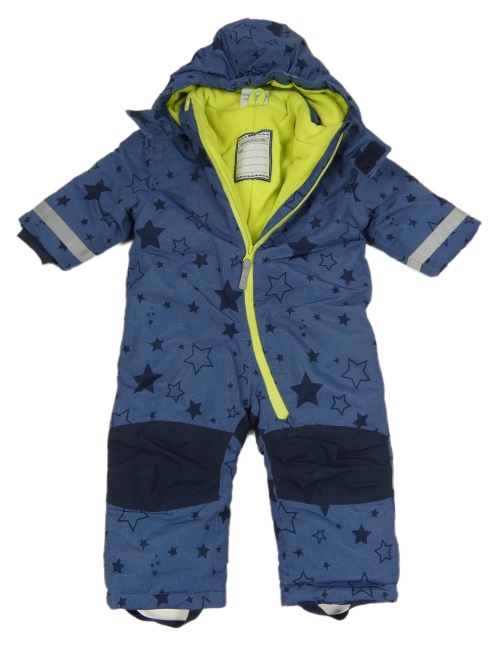 Tmavomodrá šušťáková zimná kombinéza s hviezdičkami a kapucňou Topomini