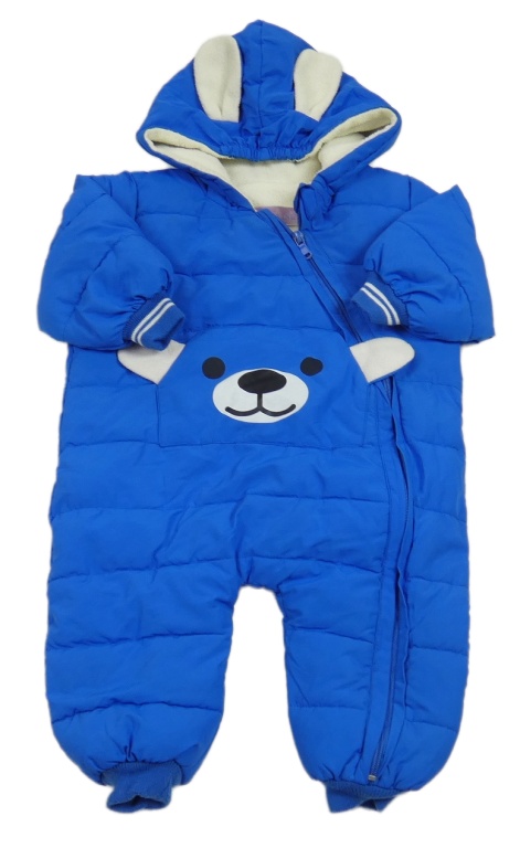 Zafírová šušťáková prešívaná zimná kombinéza s medvedíkom a kapucňou
