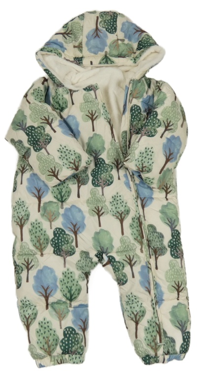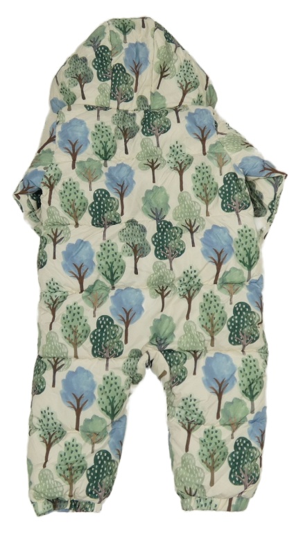 Smetanovo-zelená šušťáková zimná kombinéza so stromami a kapucňou Tu