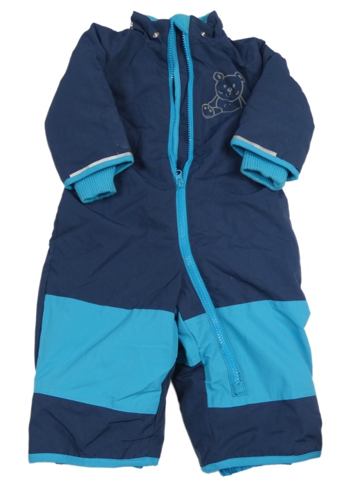 Tmavomodro-modrá šušťáková zimná kombinéza s medvedíkom bpc