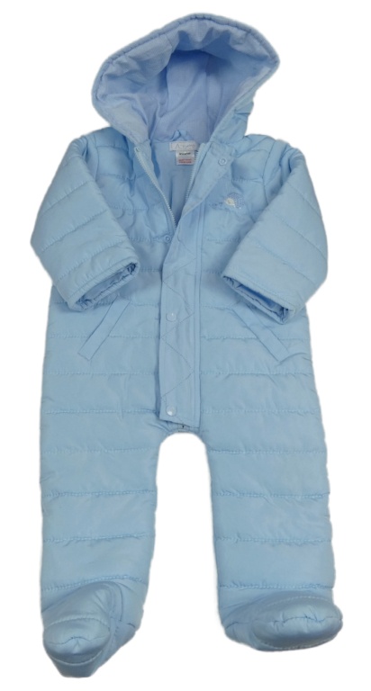 Svetlomodrá šušťáková prešívaná ľahká zateplená kombinéza s kapucňou