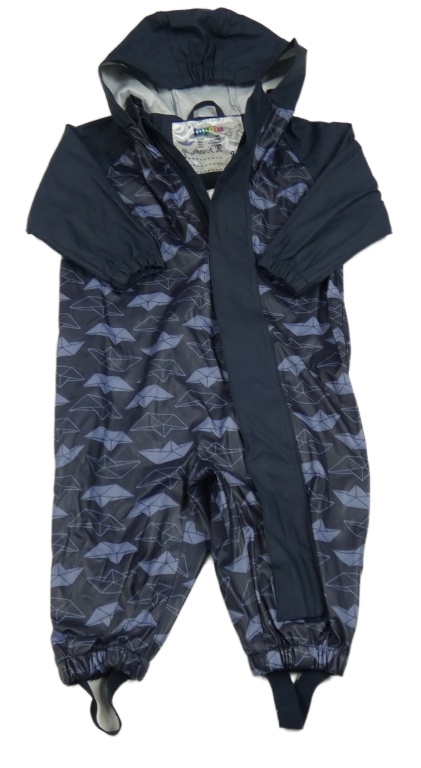 Tmavomodrá vzorovaná nepromokavá kombinéza s kapucňou