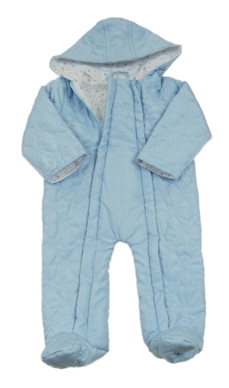Svetlomodrá šušťáková ľahká zateplená kombinéza s hviezdami a kapucňou