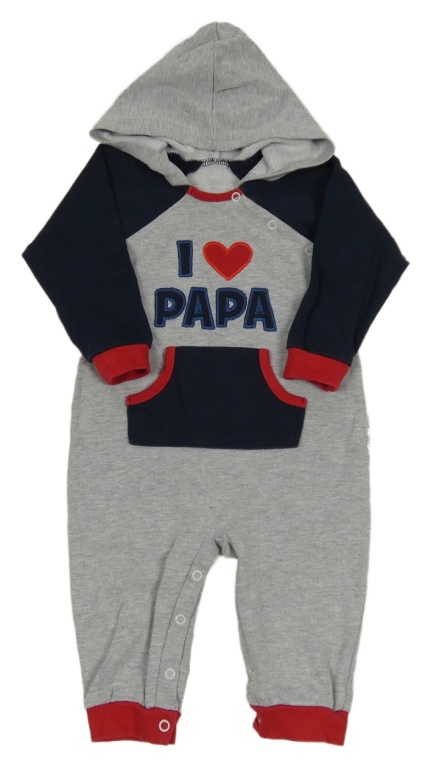 Sivo-tmavomodrá tepláková kombinéza s nápisom a kapucňou