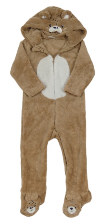 Hnedá plyšová kombinéza s kapucí - medvěď