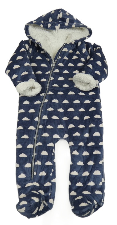 Tmavomodrá zamatová zateplená kombinéza s mráčikmi a kapucňou Next