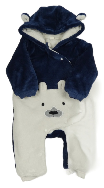 Modro-biela chlpatá zateplená kombinéza s -kapucí medvěď