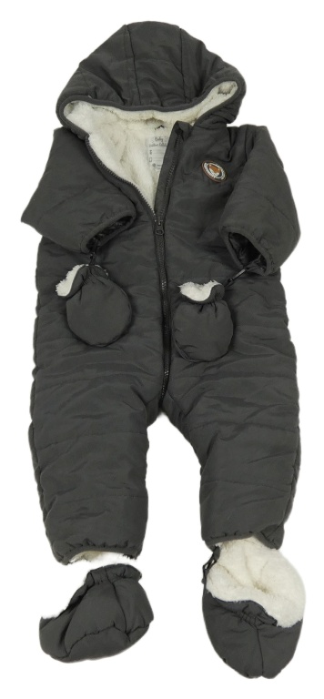 Tmavosivá šušťáková zimná kombinéza s líškou a kapucí + rukavice + cápačky Vertbaudet