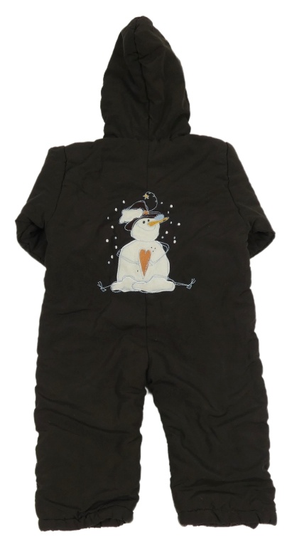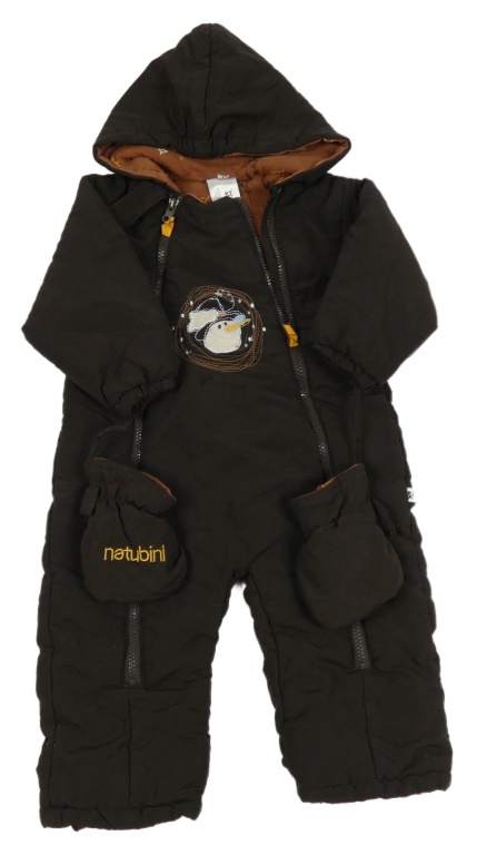 Tmavohnedá šušťáková zimná kombinéza so sněhuláčkem a kapucí + rukavice