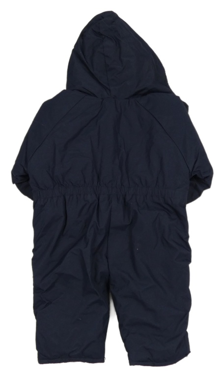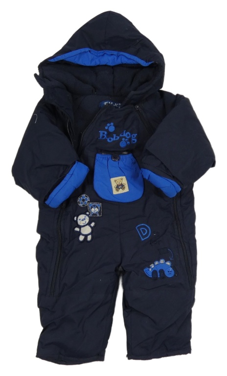 Tmavomodrá šušťáková zimná kombinéza s medvedíkmi a kapucňou