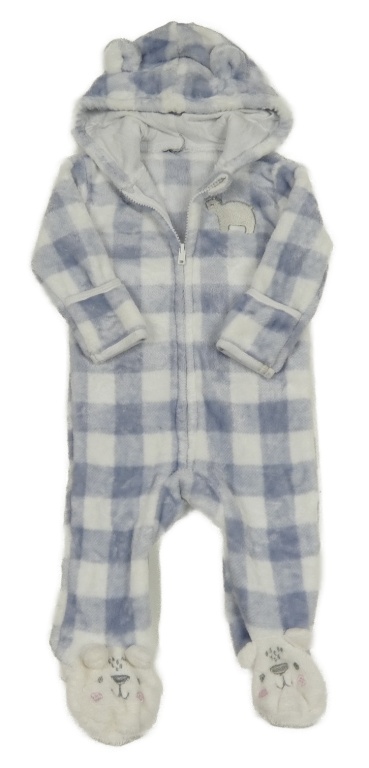 Bielo-modrá kockovaná plyšová kombinéza s kapucňou