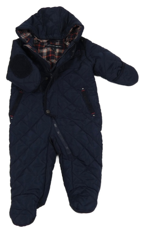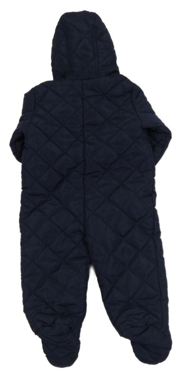 Tmavomodrá šušťáková prešívaná zimná kombinéza s kapucňou