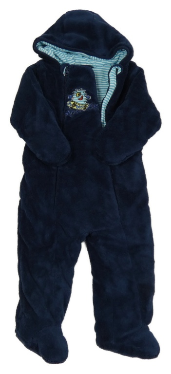 Tmavomodrá plyšová zateplená kombinéza s príšerkou a kapucňou Papagino