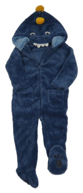 Tmavomodrá chlpatá kombinéza s ostny a kapucí - dinosaurus
