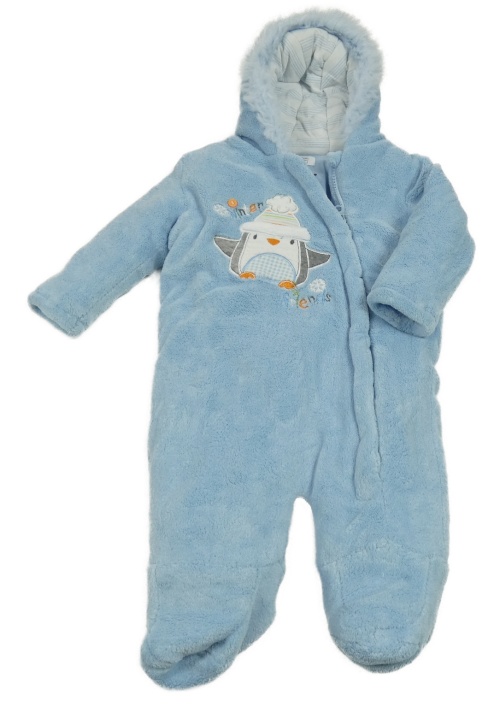Modrá chlpatá zateplená kombinéza s tučňákem a kapucňou F&F