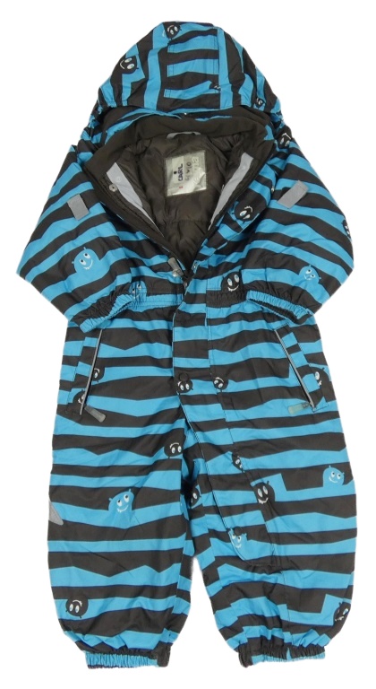 • Azurovo-tmavohnedá pruhovaná šušťáková zimná kombinéza s príšerkami a odopínacíá kapucňou reima
