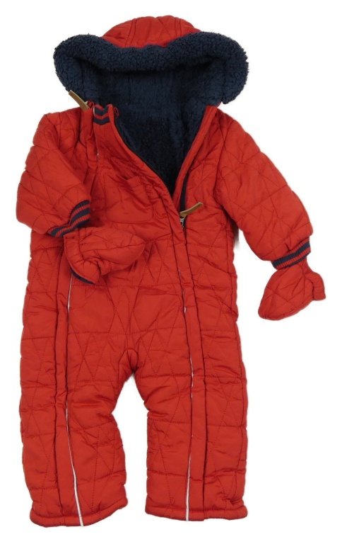 Červená šušťáková prešívaná zimná kombinéza s kapucí + rukavice Mothercare