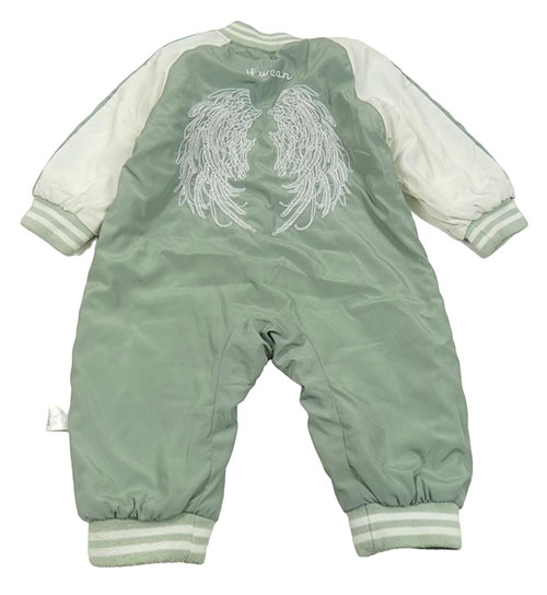 Zelenošedo-biela šušťáková zateplená kombinéza s nápisom