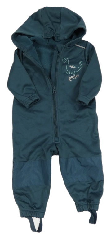 Tmavomodrošedá softshellová kombinéza s dinosaurom a kapucňou lupilu