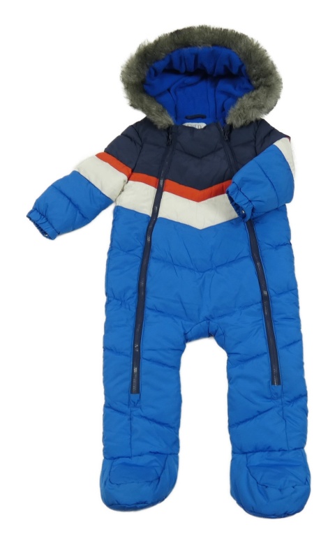Modro-bielo-červená šušťáková zimná kombinéza s kapucňou s kožešinou F&F