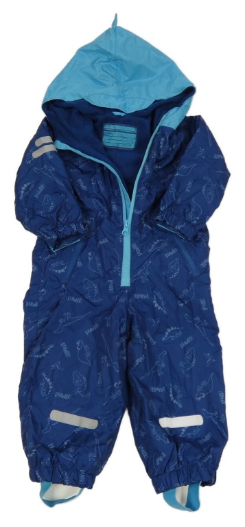 Tmavomodrá šušťáková podšitá kombinéza s dinosaurami a kapucňou Pocopiano