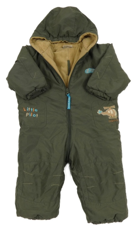 Khaki šušťáková zimná kombinéza s vrtuľníkom a kapucňou Impidimpi