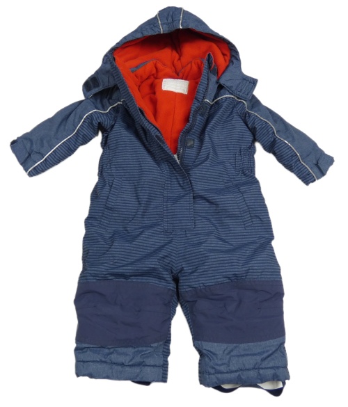 Tmavomodrá pruhovaná šušťáková zimná kombinéza s kapucňou
