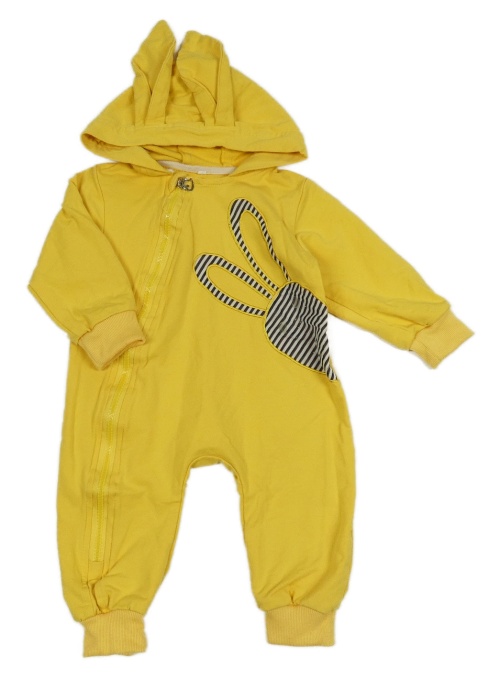 Horčicová tepláková kombinéza s králikom a kapucňou