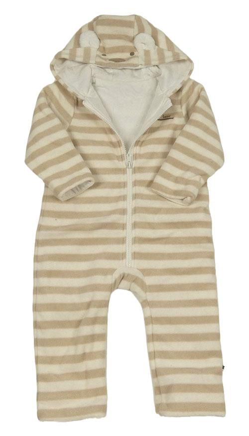 Smetanovo-béžová pruhovaná fleecová podšitá kombinéza s nápisom a kapucňou F&F